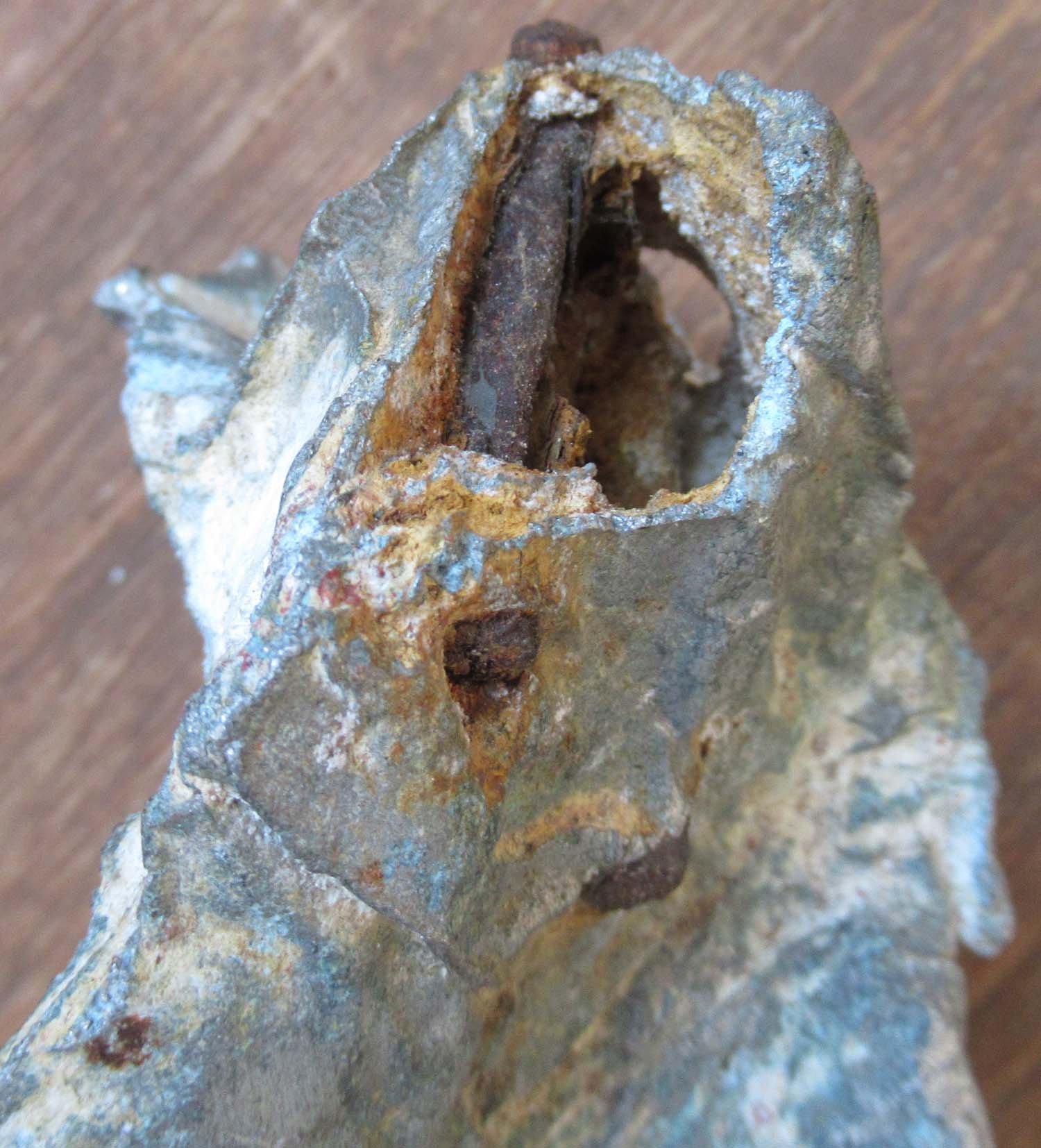 Spitfire MK IX MJ 170 132 Squadron .303 shell casing which has exploded when the aircraft crashed.