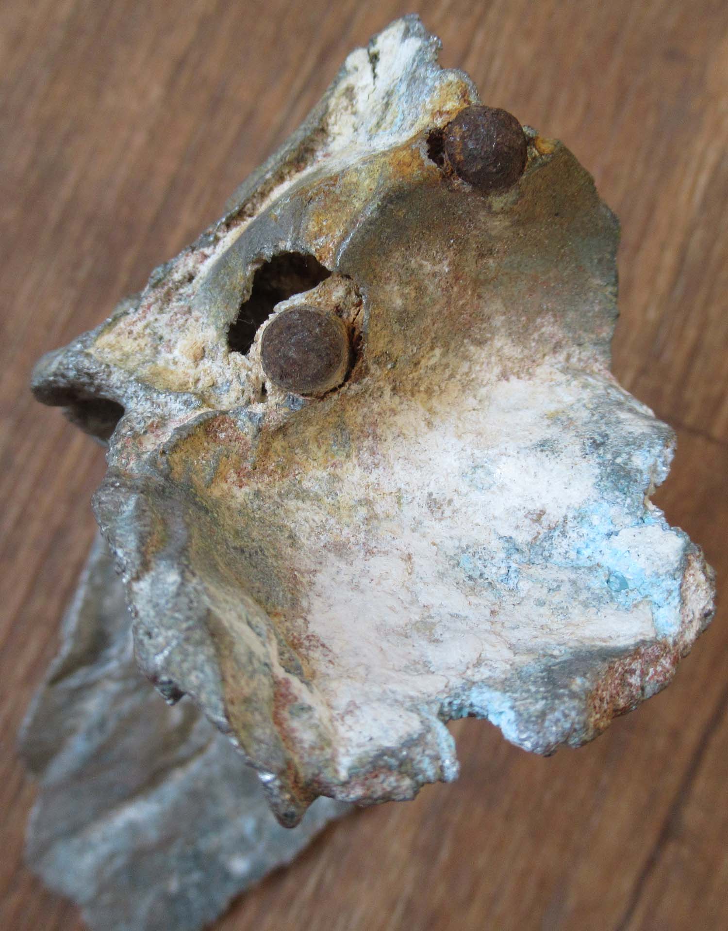 Spitfire MK IX MJ 170 132 Squadron .303 shell casing which has exploded when the aircraft crashed.